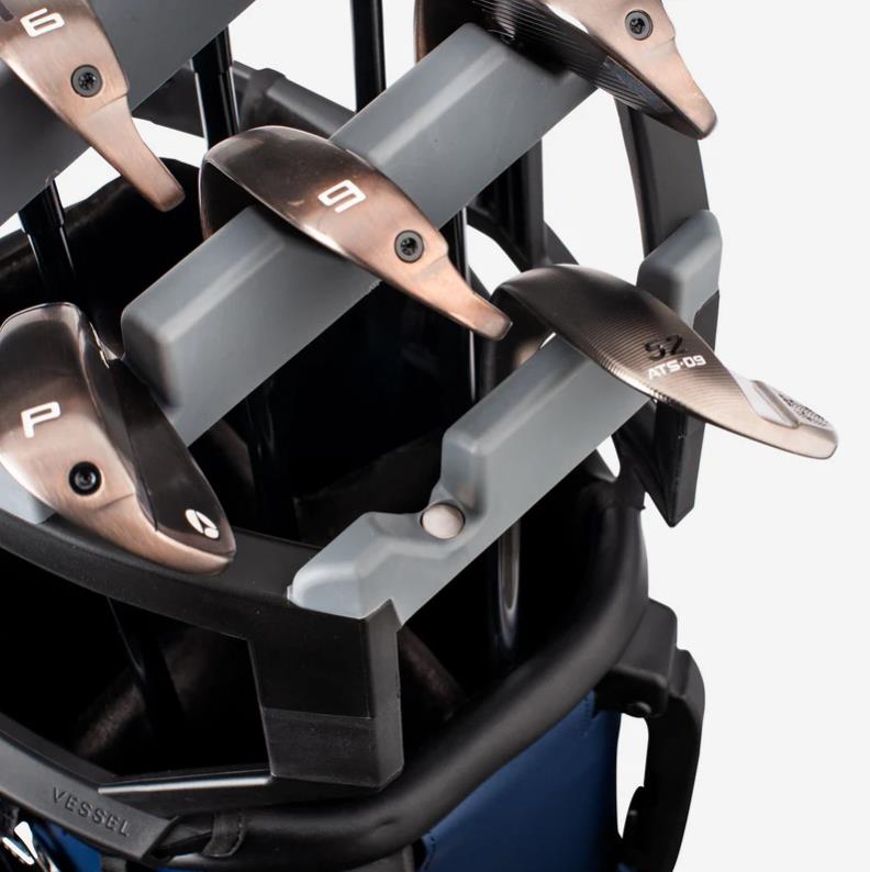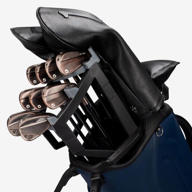 가장 소중한 장비인 골프 클럽, 이제 골프 클럽 오거나이저로 완벽하게 보호하세요. Player V Pro 전용으로 설계된 이 오거나이저는 9개의 개별 고무 슬롯을 갖추고 있어 클럽마다 독립적인 수납 공간을 제공합니다. 특히 각 슬롯에 내장된 마그네틱(자석)이 클럽을 단단히 고정해 주어, 이동 중이나 거친 지형에서도 클럽끼리 부딪히는 소음과 손상을 방지합니다. Player V Pro 스탠드 백에 스냅 버튼으로 간편하게 장착할 수 있으며, 미사용 시 탈거도 매우 용이합니다.